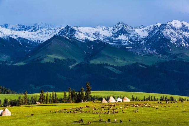 🌄【那拉提草原】——千里草原,一望无际,这里的草原宽广无垠,牛羊成群,毡房点缀其间,是感受草原风情、体验牧民生活的绝佳之地。